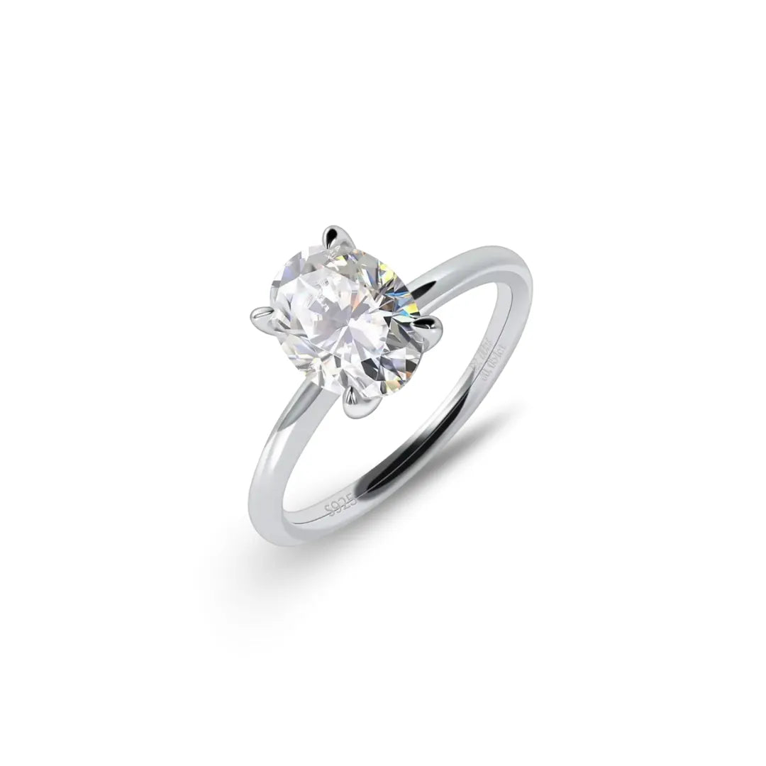Seu brilho hipnotizante vem da moissanita de 3.0 quilates, cuidadosamente lapidada em um corte oval de 8mm, que reflete a luz com intensidade e sofisticação incomparáveis.
